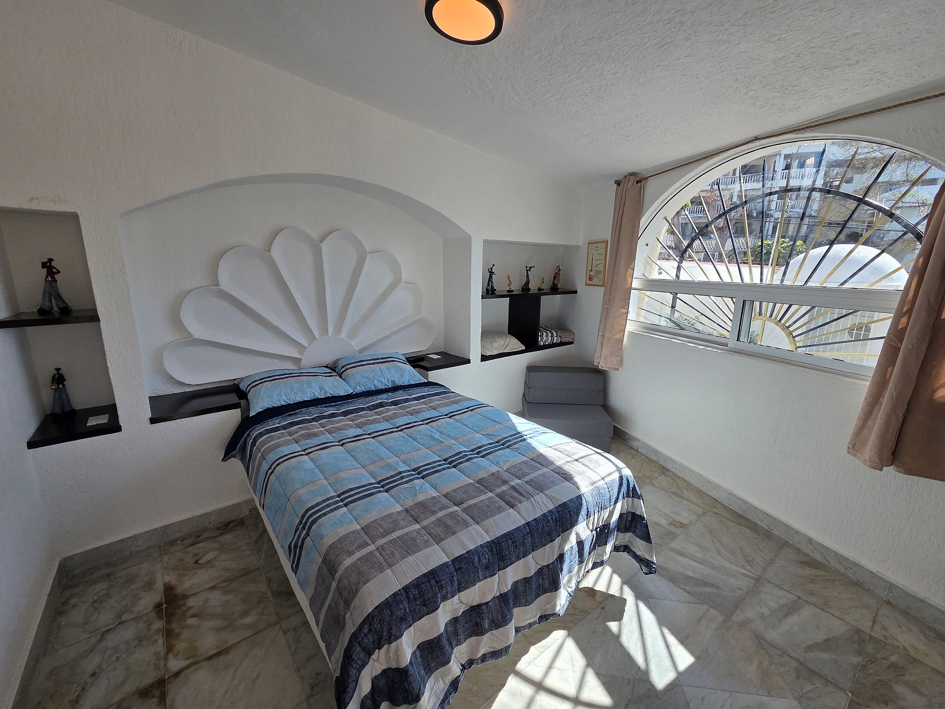 Relax in our room and enjoy the beach, which is just 5 minutes away, and at night rest in a comfortable double bed or relax by watching a movie on the smart TV. And don't worry about the heat, as it has air conditioning.